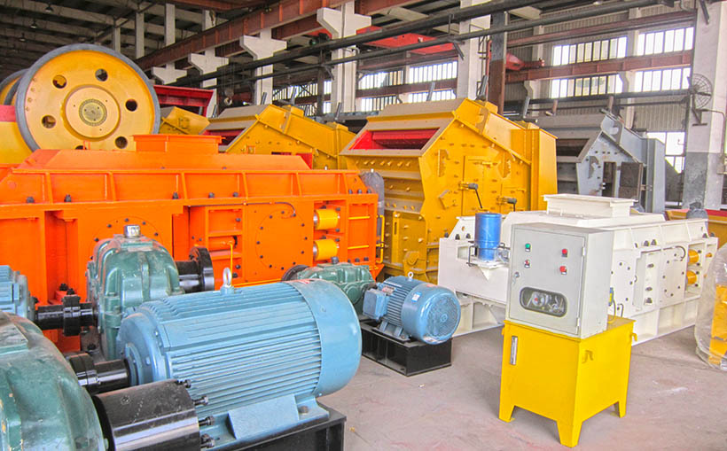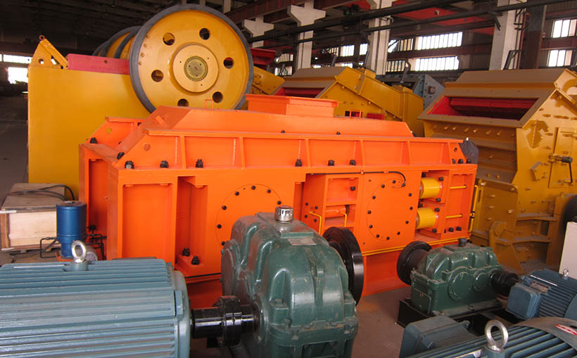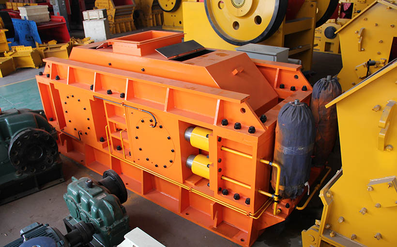 對輥破碎機主要由輥輪、輥輪支撐裝置、壓緊和調(diào)節(jié)裝置、再加上驅(qū)動裝置組成,液壓輥式破碎機在多加了一個液壓系統(tǒng)(保護裝置)。下面上山友重工工廠生產(chǎn)的對輥式破碎機: