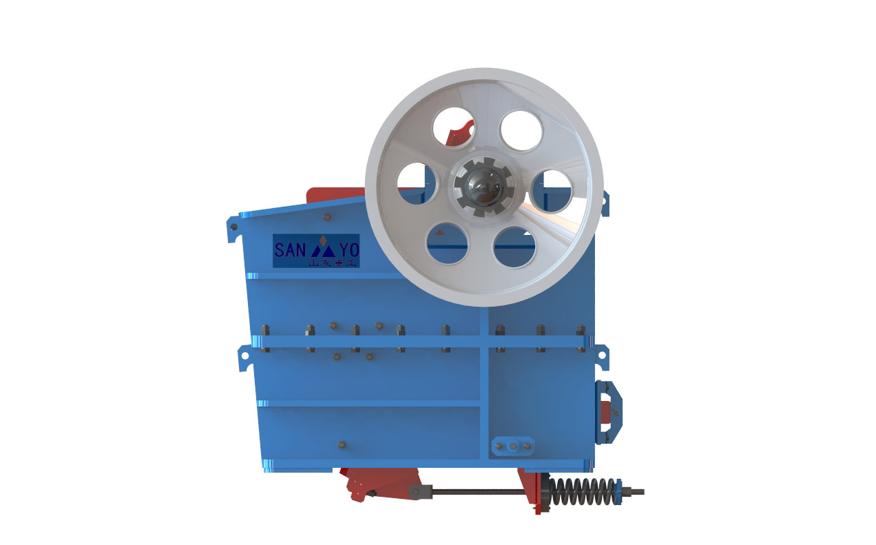 廣義上來(lái)講,液壓顎式破碎機(jī)是顎式破碎機(jī)中的一種,所以,在外觀上,兩者大同小異,不在這一行的話,基本很難區(qū)分(辨別)。液壓顎式破碎機(jī)的組成部分除了有和普通顎式破碎機(jī)一樣的動(dòng)定顎板,主軸,軸承,側(cè)板,動(dòng)案板之外,最主要的增加了對(duì)動(dòng)顎板有保護(hù)液壓缸系統(tǒng)和肘板。下面,就是sanyyo生產(chǎn)的HV歐版液壓顎式破碎機(jī)及結(jié)構(gòu)剖析圖: